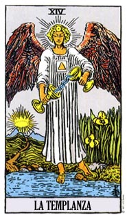 Por ejemplo, las cartas Estrella y Templanza tienen figuras que vierten agua de vasijas sagradas. Ambas cartas también muestran a estas figuras sumergiendo su pie izquierdo en el agua. Ambas cartas también cuentan con imágenes que nos conectan con las estrellas. En la carta de Templanza, es un ángel, que a menudo se asocia con el vuelo (alas) y los reinos superiores. En la carta de estrellas, las estrellas nos conectan con los reinos del espacio y el cosmos. El número 7 aparece aquí, muy probablemente las Siete Hermanas a menudo llamadas el cúmulo de estrellas de las Pléyades. Esto también puede conectarse con los Siete Mares profundizando la conexión con lo sagrado femenino, el agua (que a menudo se asocia con los aspectos femeninos más suaves) y las tradiciones de la sacerdotisa del agua antigua, que consideraban sagrados los números 3 y 9.