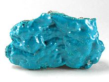 Su color proviene del proceso de oxidación del mineral de cobre, que adquiere un color cian con una exposición prolongada al oxígeno, pero la piedra también contiene varias cantidades de otros minerales, que crean su textura suave y apariencia porosa.